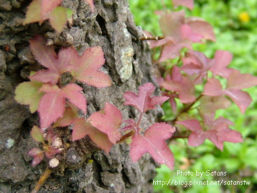 這張是陽明瀑布(即大屯瀑布)附近唯一一棵勉強可以看的楓樹(我還是認不出是青楓還是楓香),其他的不是沒什麼葉子在樹枝上,不然就是一堆都是綠葉或褐黃色的枯葉。照片裡這種要死不活的紅色,就像被吐了檳榔汁在上面而且還吐得不均勻,氣得我很想摔相機洩憤。(當然不可能真的摔啦,這可是我的寶貝相機耶....)