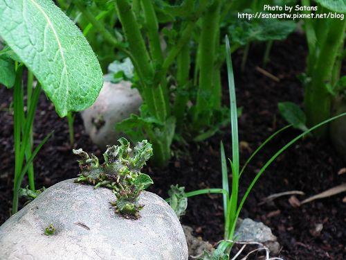 馬鈴薯發芽後長這樣。這邊有一堆蔬菜,傳說中的空心菜不知道是不是在這區,因為我沒看到。沒看到空心菜真是遺憾啊....