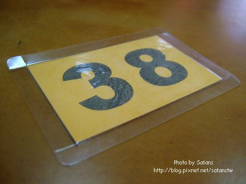 我們的號碼牌。由於客人太多,沒號碼牌一定會亂成一團。事後諸葛一下,38=19*2,所以馬英九先生當選是早就確定了的嗎?當時我居然沒讀出這個天機,真囧....