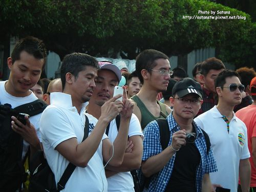 這次的遊行最大特色就是將隊伍分成東西兩線。主要目的有兩個:一個當然就是遊行人數實在太多,分成兩線有助於疏散過多人潮;二是東線行經地區有較多的文教、住宅區,行經此地,主辦單位是希望能對中小學校性別平等教育的了解與推動有所幫助。但當然分成兩線也不能說沒有缺點,這樣固然有效地分散人潮,不再如去年那般隊伍前端繞完一圈回來,尾巴卻還沒出發的窘境,不過也造成了兩線的人龍比起去年都少了些,特別是東線只有水男孩這個人氣團體,跟著東線隊伍走的人就更少了,視覺效果不免差了些。但這是瑕不掩瑜啦,只是個人一點私心,認為浩浩蕩蕩地(拍起來)比較壯觀罷了。